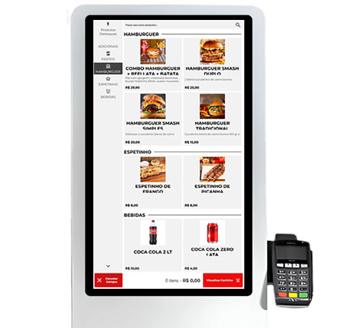 Sistema para área alimentícia que gerencia mesas, comandas e totens de autoatendimento, operando de forma multiplataforma para agilizar pedidos, minimizar filas e elevar a experiência do cliente